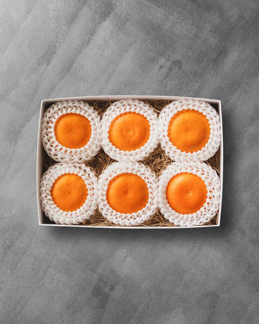 真っ白でシンプルなギフトボックスは、どんなシーンにもマッチする洗練されたデザインです。華美な装飾を避け、果物の美しさを引き立てるミニマルなスタイルは、大切な人への気持ちを果実と届ける。