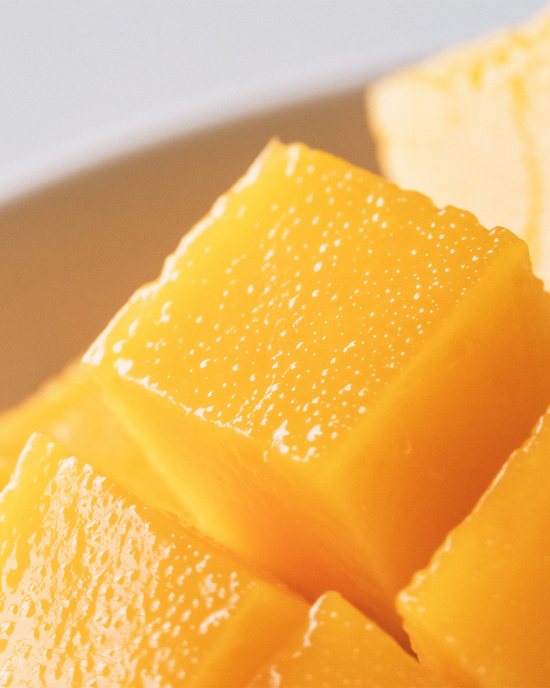 アーウィン種の最大の特徴は、圧倒的な甘さ。果肉は繊維が少なく、なめらかでやわらかく、まるで舌の上でほどけるような口あたり。そのジューシーさは「食べるジュース」とも称されるほどです。加えて、カットした瞬間に広がる芳醇なトロピカルの香り──。