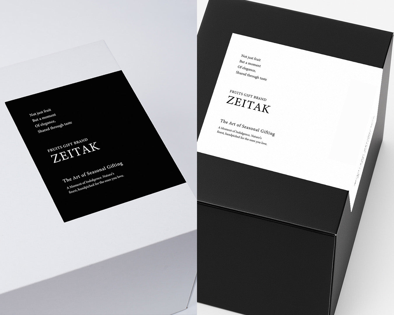 ZEITAKの外箱は、余計な装飾を省いたミニマルなデザイン。果実そのものの美しさが引き立つよう、色・形・質感すべてにこだわりました。開けた瞬間に心がふっと緩むような、贅沢なひとときをお届けするために。見た目も体験の一部として設計しています。