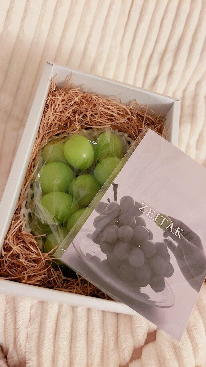 憧れのzeitakさんのシャインマスカットは一粒一粒が大きくてプリプリ、鮮やかなグリーンで見た目から良い果物というのが分かります。実際に食べてみるととても甘く、一粒が大きくて弾けました。